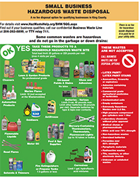 ![]() Small Business Hazardous Waste Disposal: What to Bring What Not to Bring This flyer shows some of the materials that are accepted for disposal and gives options for materials that are not accepted. (PDF, 853.9 KB) |